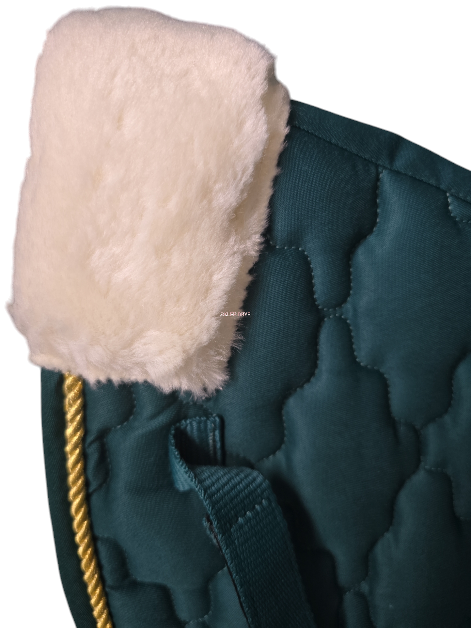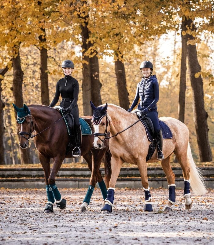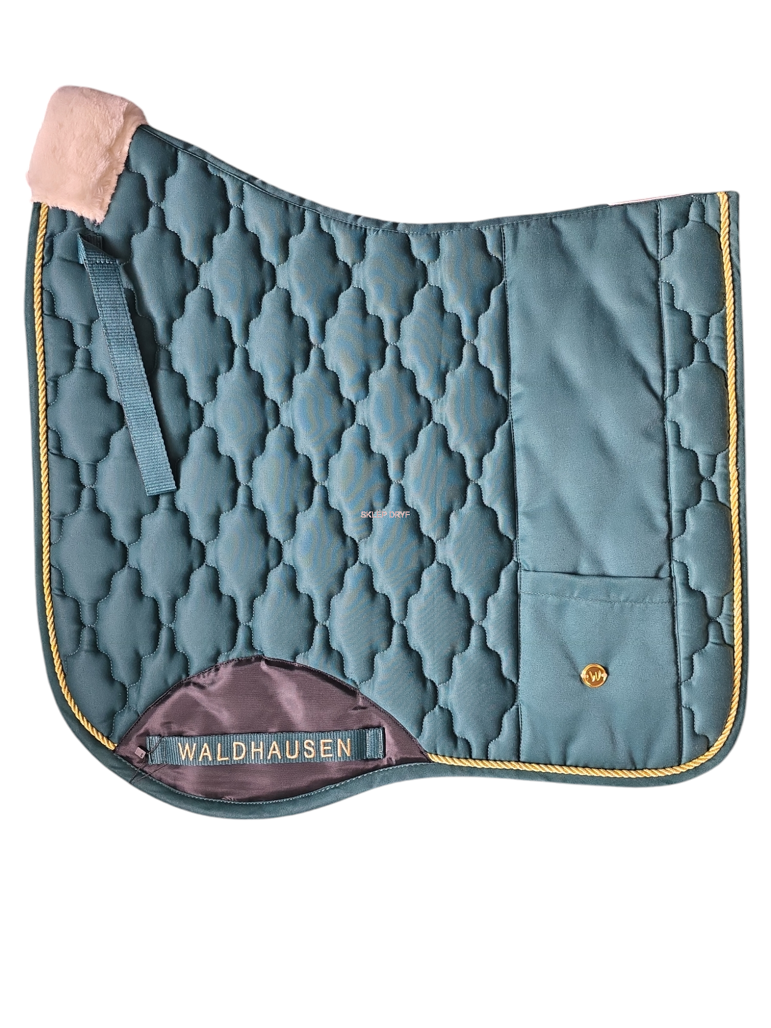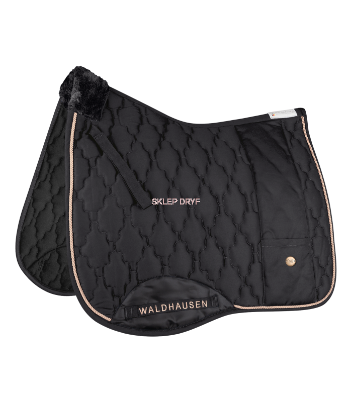 Wysokiej jakości czaprak pod siodło z miękkim wypełnieniem na kłębie oraz małą kieszonką na smakołyki, chusteczki itp.
