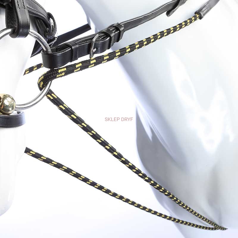 Wodza skórzana o szerokości 16 mm wraz z linkami, które są zakończone karabińczykami. Pętla do popręgu.
