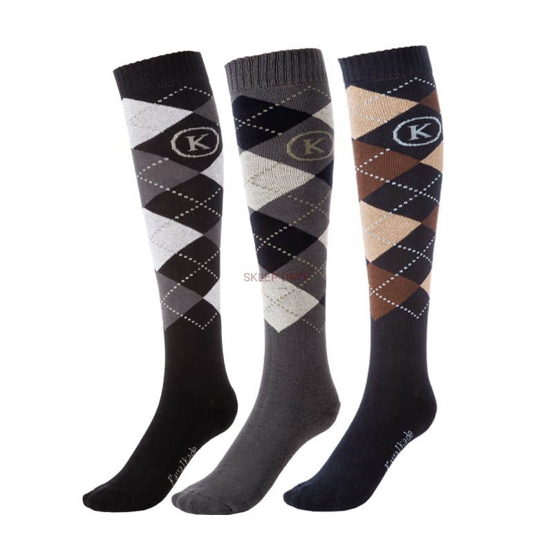 Podkolanówki w kratkę to idealne skarpetki jeździeckie do codziennego użytku.