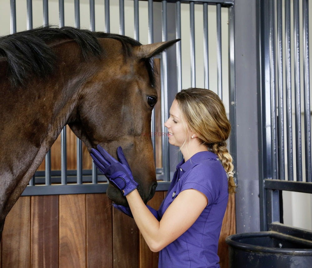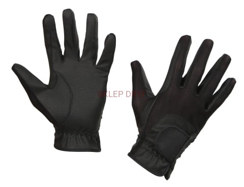- przewiewne letnie rękawiczki jeździeckie z tekstylnym grzbietem i antypoślizgową powierzchnią wewnętrzną dłoni