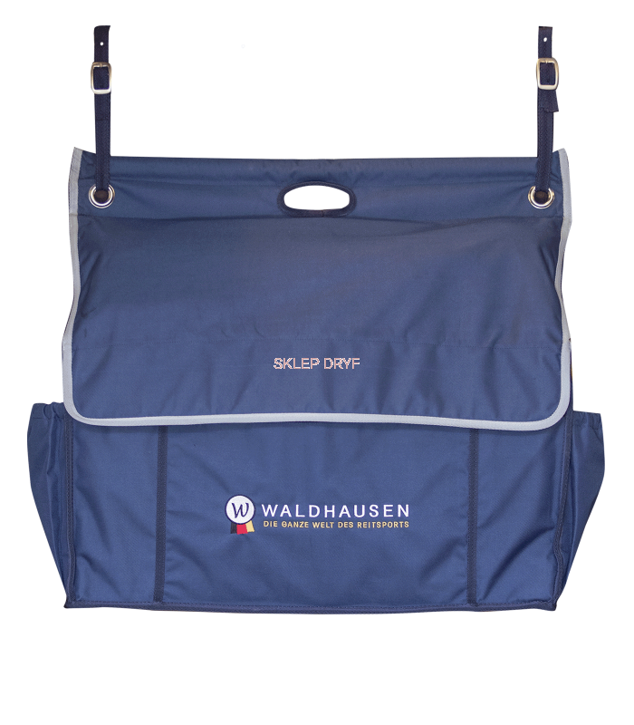 Bardzo łatwa do przymocowania do boksu za pomocą dwóch pasków. Torba posiada dodatkowy pasek do noszenia torby w stajni lub na zawodach. Posiada kieszenie zewnętrzne, a także regulowaną przegrodę wewnątrz. Wzmocniona podstawa torby, jest zamykana na suwak i zapięcie na rzep.