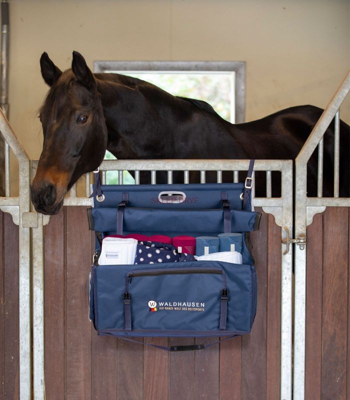 Zapewnia dużo miejsca na szczotki, sray do grzywy i ogona, ochraniacze, zestaw do pielęgnacji, kantar itp.